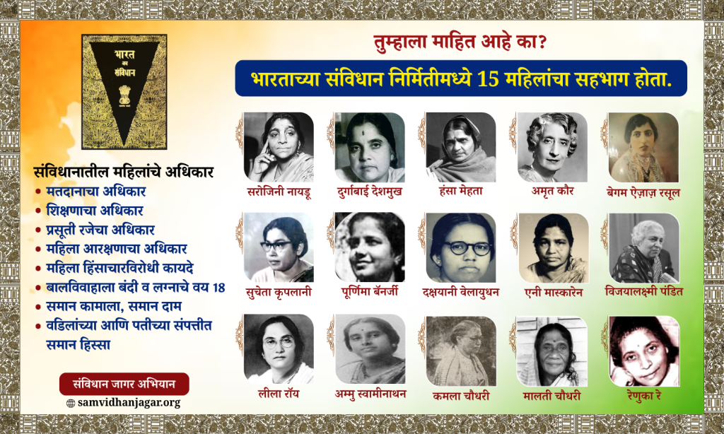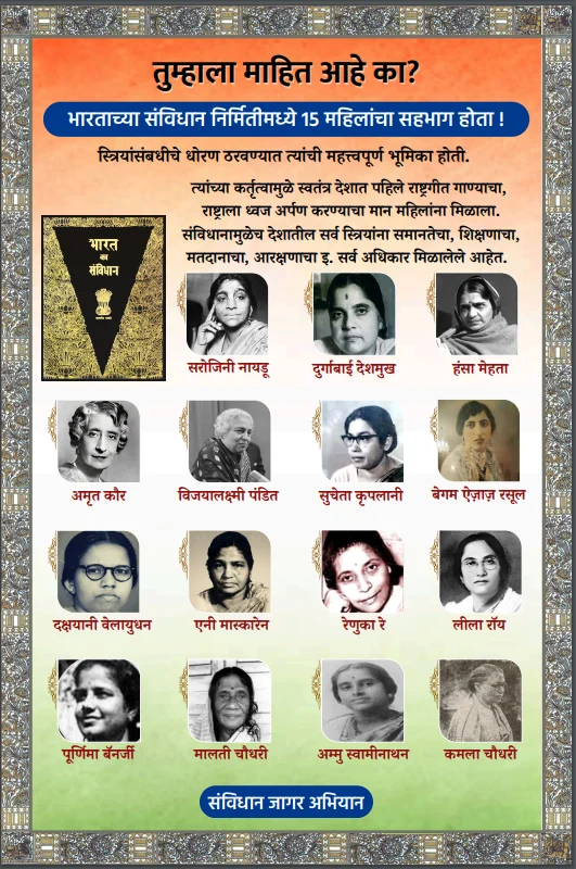 संविधान सभेतील 15 महिलांविषयी त्या भूमिकेत जाऊन 15 महिलांना घेऊन त्यांची भूमिका आणि जीवनपट सादर करणारा कार्यक्रम करू शकता.