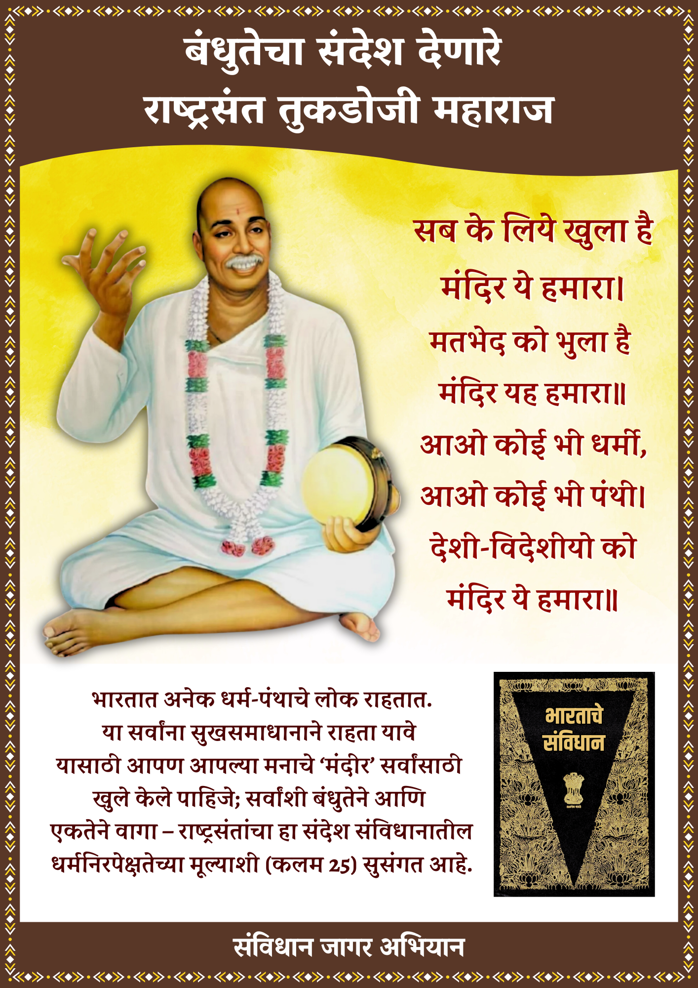 आपल्या संविधानाला यंदा 75 वर्षे पूर्ण होत आहेत. चला, संविधानाच्या अमृत महोत्सवाच्या निमित्ताने लोकांपर्यंत भारतीय संविधानाचा विचार घेऊन जाऊया…