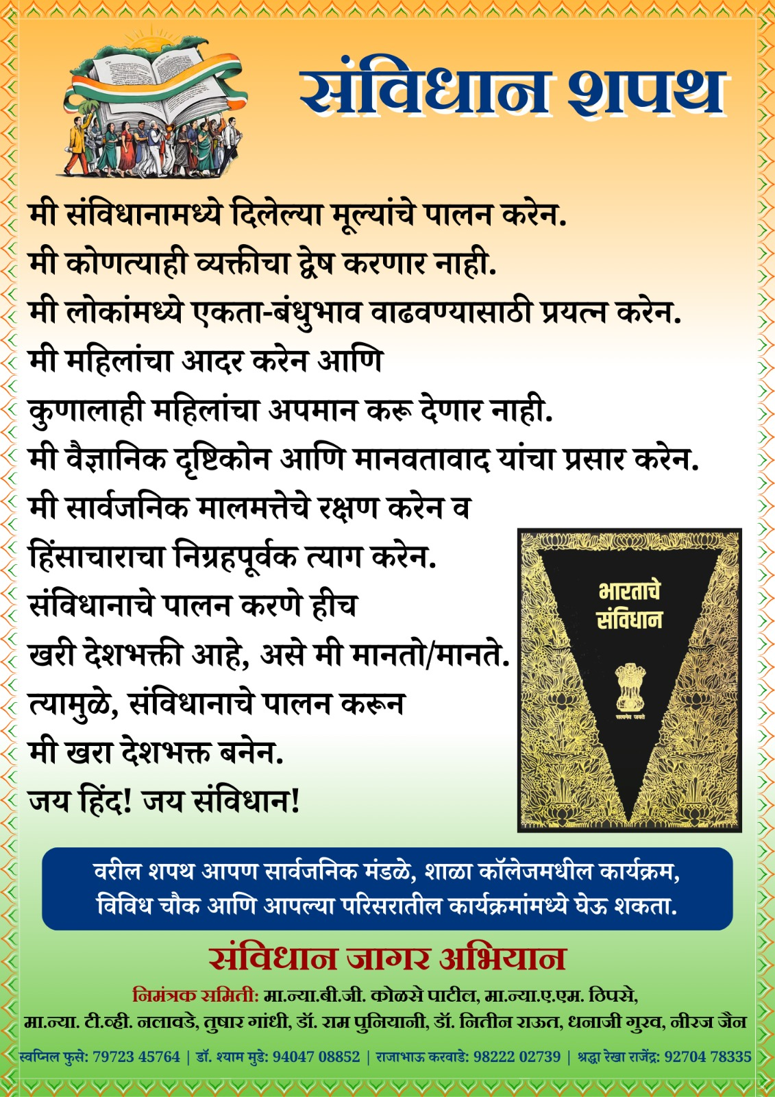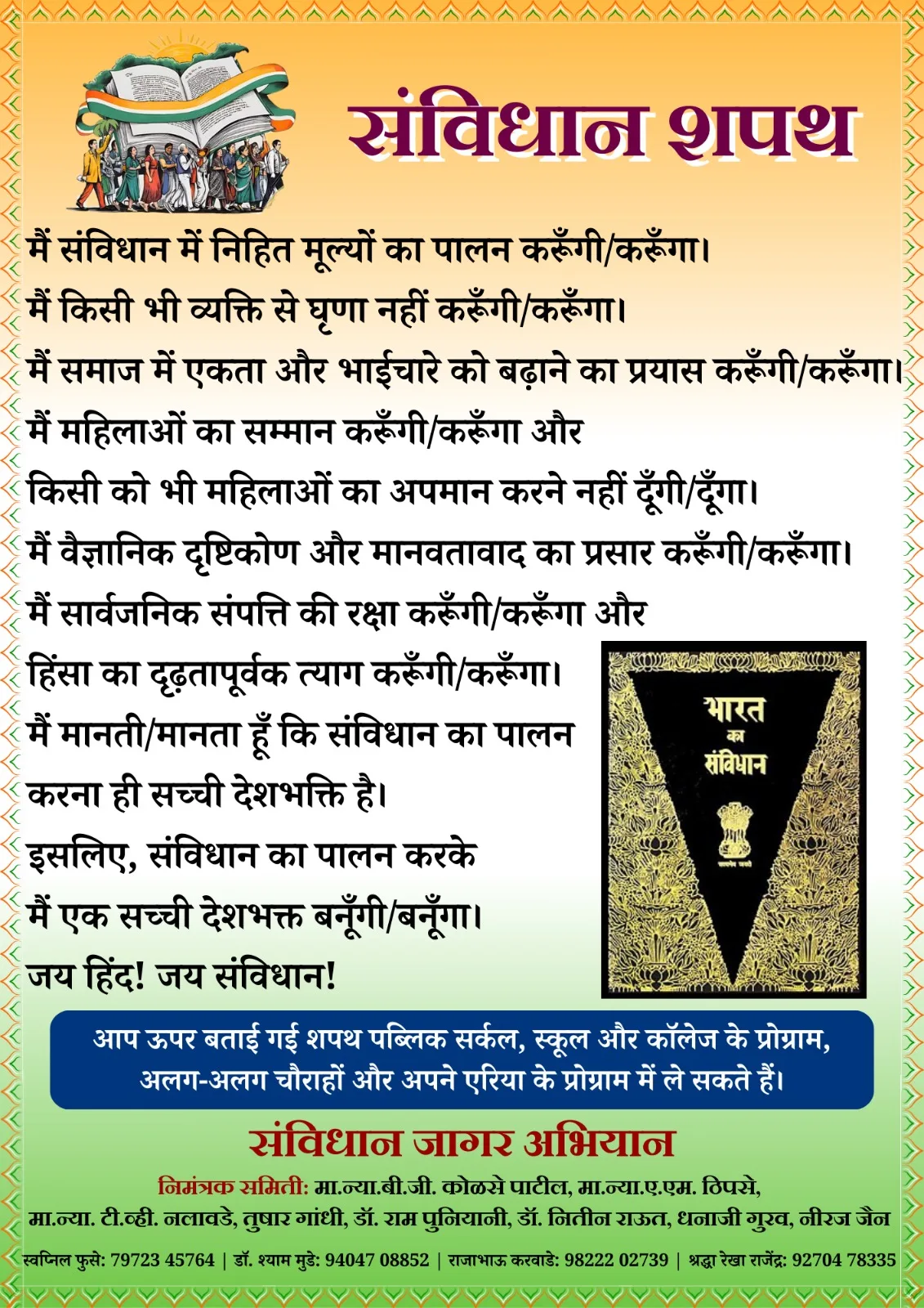 संविधान दिनी आपण संविधानावरील शपथ शाळा-कॉलेजमध्ये घेऊ शकता.