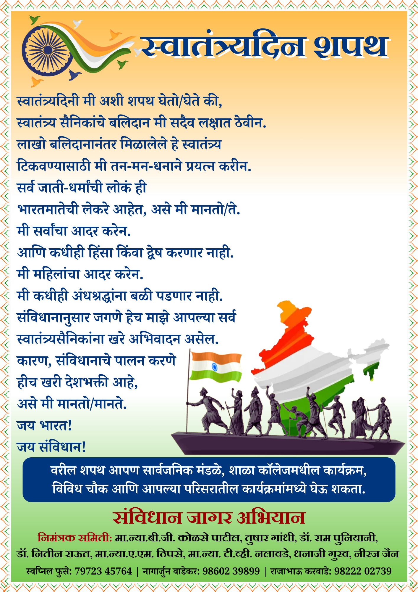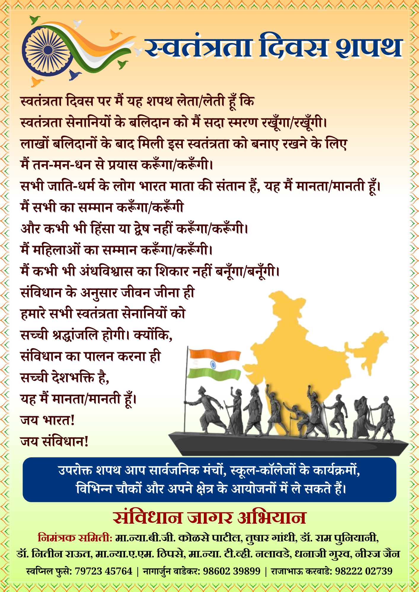 स्वातंत्र्य दिनानिमित्त संविधान जागर अभियानाचे आवाहन